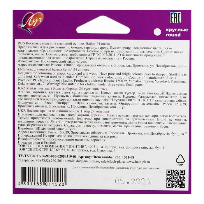 Мелки восковые 24 цвета "Классика", круглые