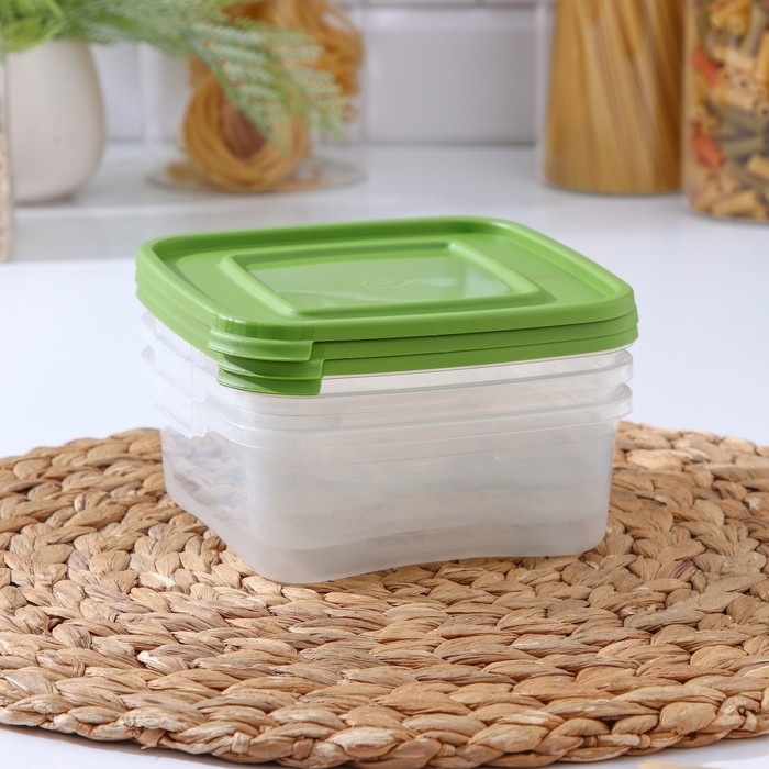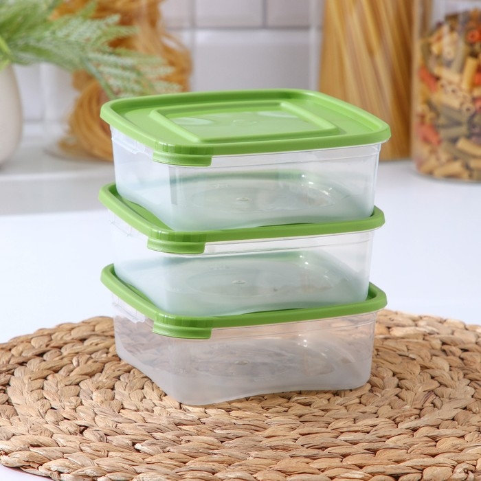 Набор пищевых контейнеров «Каскад», 14×14×5,5 см, 700 мл, 3 шт, прозрачные, крышки микс