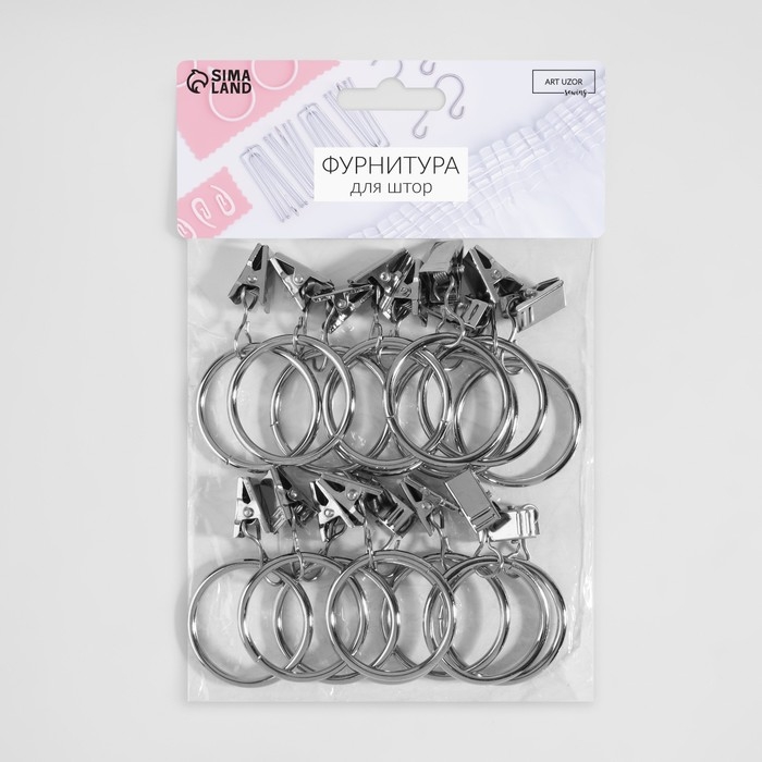 Кольцо для карниза, с зажимом, d = 32/38 мм, 20 шт, цвет серебряный