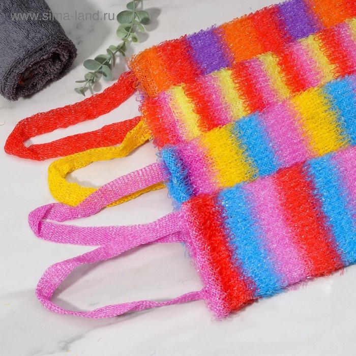 Мочалка для тела Доляна «Радуга», 12×45 см, МИКС