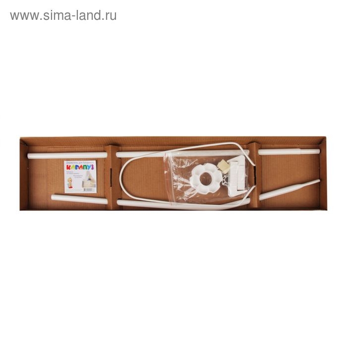 Кронштейн высотой 150 см надёжно крепится к кроватке в двух местах. Изделие окрашено в белый цвет безопасной краской. Вместе с балдахином поможет создать уют и особое настроение в детской комнате.