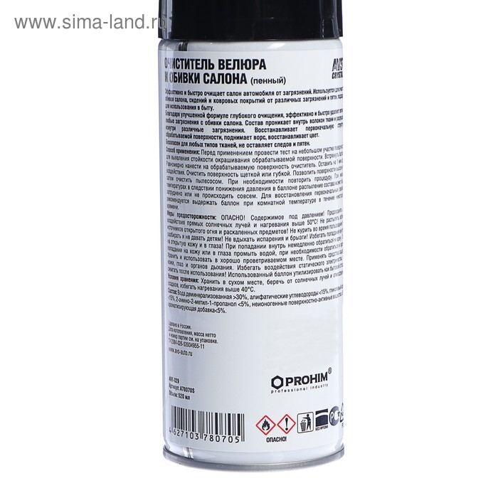 Очиститель велюра и обивки салона AVS AVK-029, пенный, 520 мл