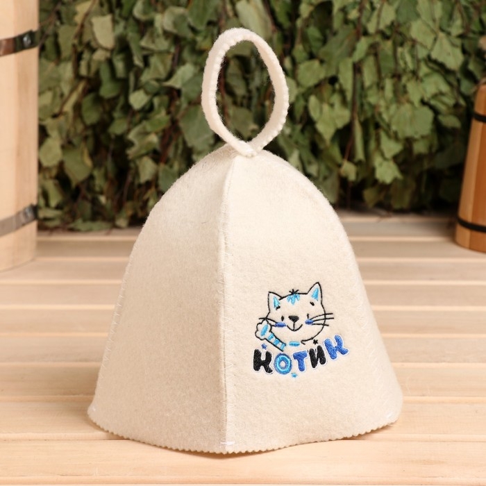Шапка банная с вышивкой детская "Котик"