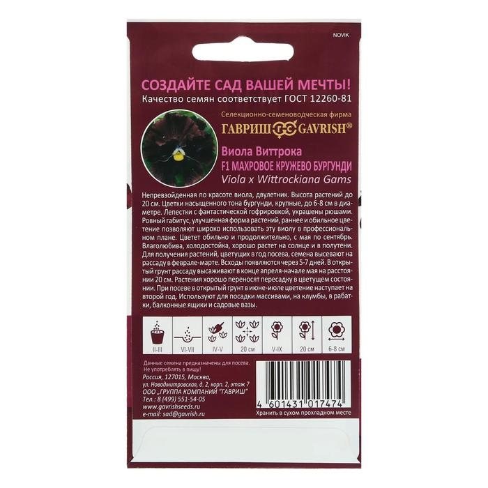 Семена цветов Виола "Махровое кружево", ц/п, 4 шт.