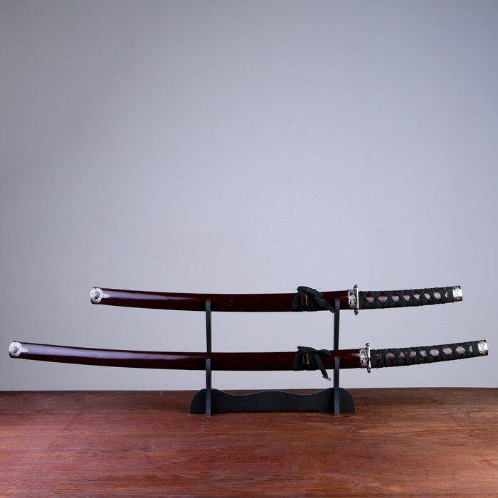 Сув. изделие катаны 2в1 на подставке, ножны дерево, красные глянец 78/99см