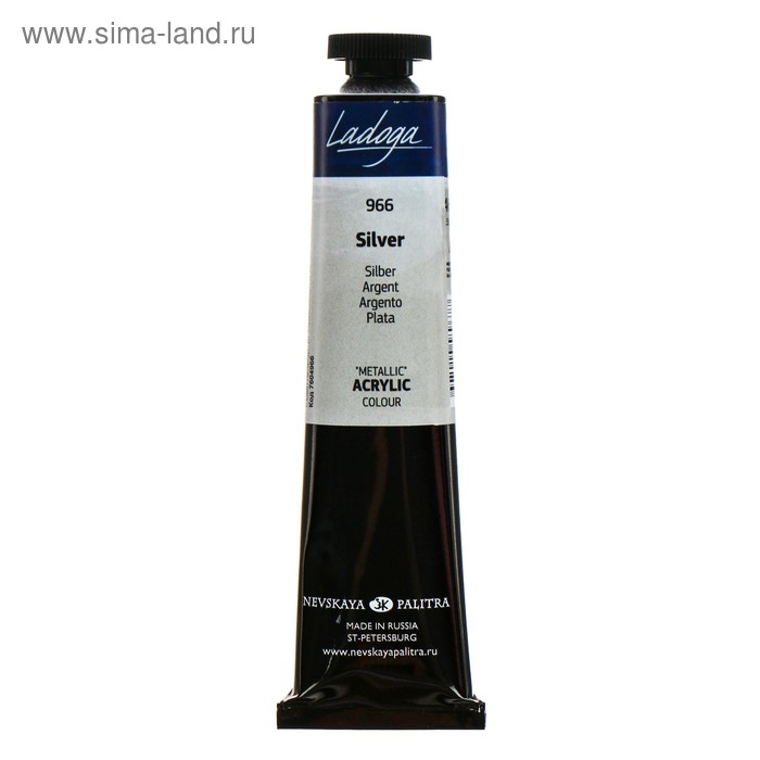 Краска акриловая художественная в тубе 46 мл, ЗХК "Ладога", Metallic, серебро, 7604966