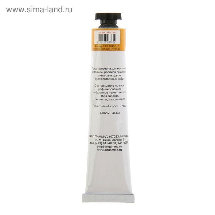 Краска масляная в тубе 46 мл, Гамма "Студия", №116 охра жёлтая
