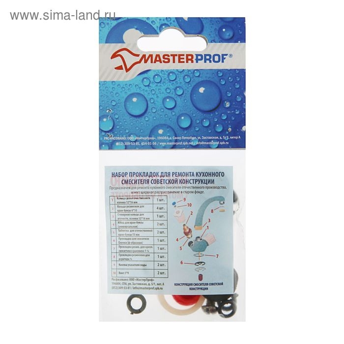Набор прокладок Masterprof ИС.130259, для ремонта кухонного смесителя отеч. конструкции