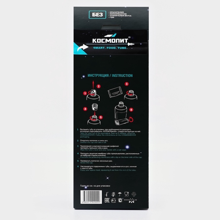 Состав экзотического творожного крема с фруктовым пюре почти не отличается от привычного домашнего десерта. Но космическое блюдо в компактной алюминиевой упаковке можно взять с собой куда угодно. Ёмкость, в которую помещается 165 граммов пищи, не боится коррозии и перепадов температуры. Ей не нужен холодильник. Даже если вы оставите тюбик на жаре, его герметичность не даст содержимому испортиться.