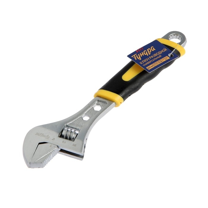 Ключ разводной ТУНДРА, никелированный, двухкомпонентная рукоятка, 250 мм