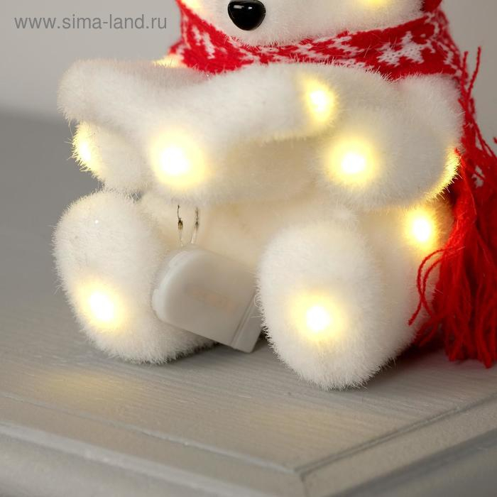 Светодиодная фигура «Медвежонок в шапке» 10 × 18 × 10 см, флок, батарейки CR2032х2 (в комплекте), свечение тёплое белое