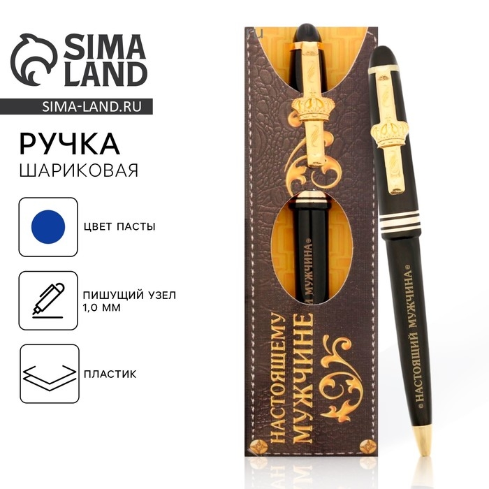 Ручка шариковая синяя паста 1.0 мм «Настоящий мужчина» пластик, подарочная