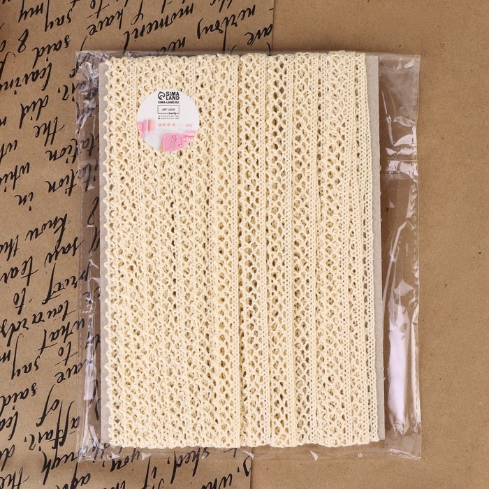 Кружево вязаное, 15 мм × 15 ± 1 м, цвет бежевый