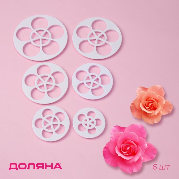 В комплекте 6 вырубок, каждая из которых создана для того, чтобы придать вашим творениям форму изящных роз. С их помощью вы сможете легко и быстро украсить торты, пирожные, печенье и другие кондитерские изделия, добавив им неповторимый шарм и элегантность.