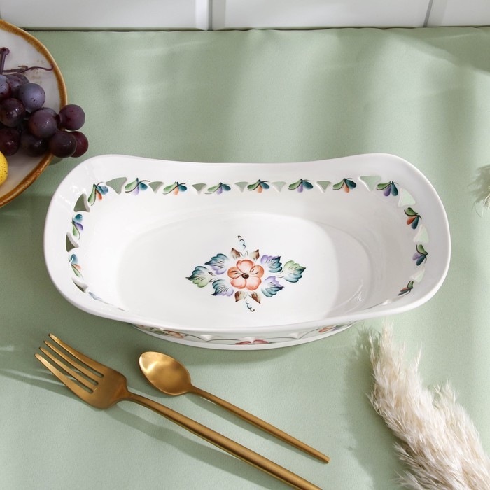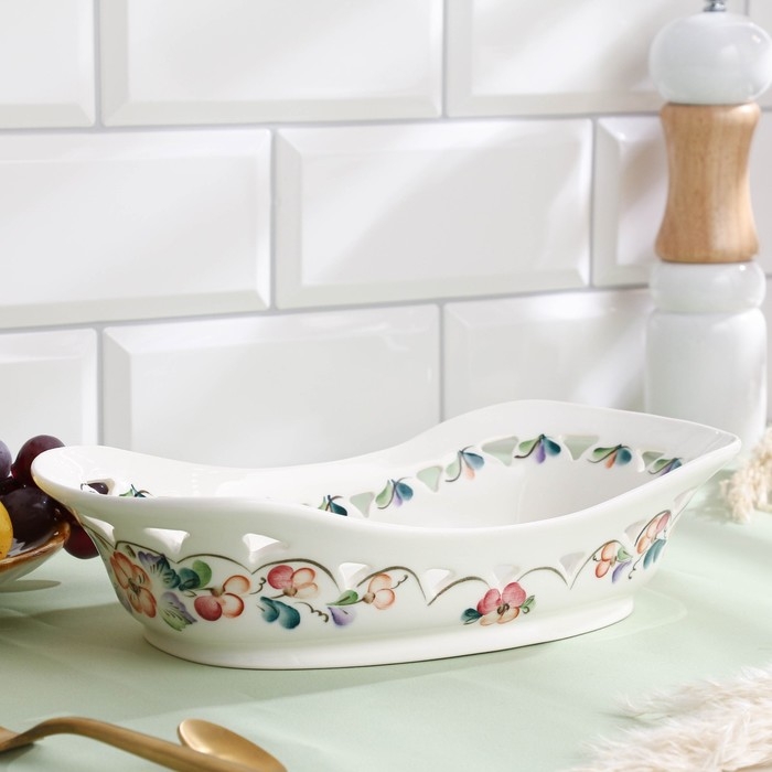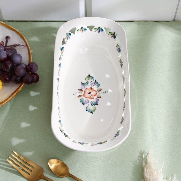 Хлебница "Роспись" бежевая 32х18см