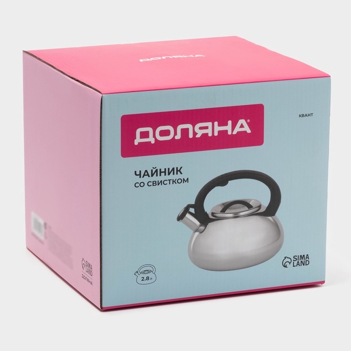 Чайник со свистком из нержавеющей стали Доляна «Квант», 2,8 л, фиксированная ручка, цвет хромированный