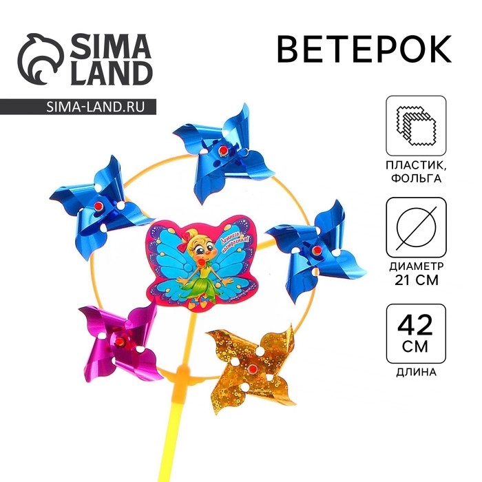 Ветерок — универсальная воздушная игрушка. Покажите ребенку, как дуть на неё, чтобы мельница завертелась, либо просто наблюдайте вместе, как она придёт в движение от малейшего порыва ветра. Эта забава заворожит детей и взрослых и настроит на позитивный лад.