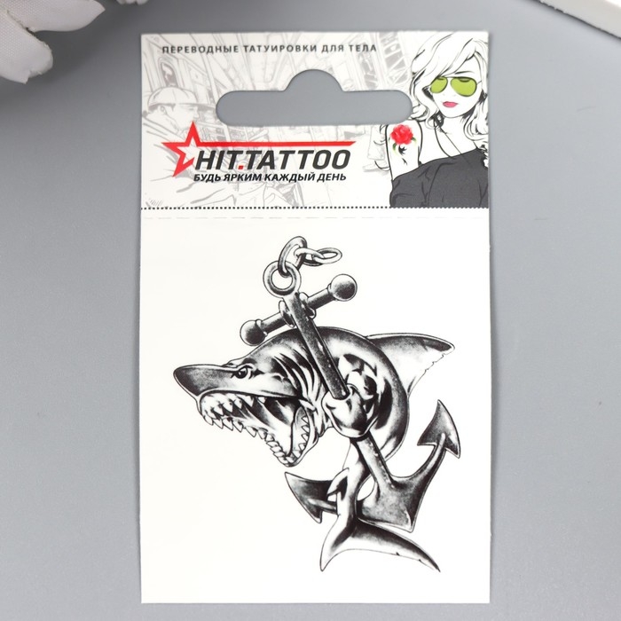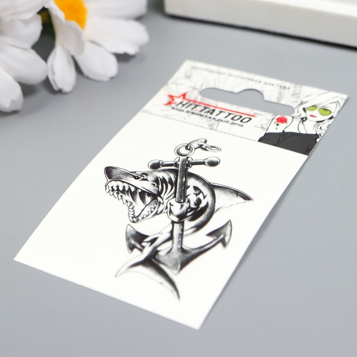 Татуировка на тело "Акула с якорем" 5,3х6,3 см