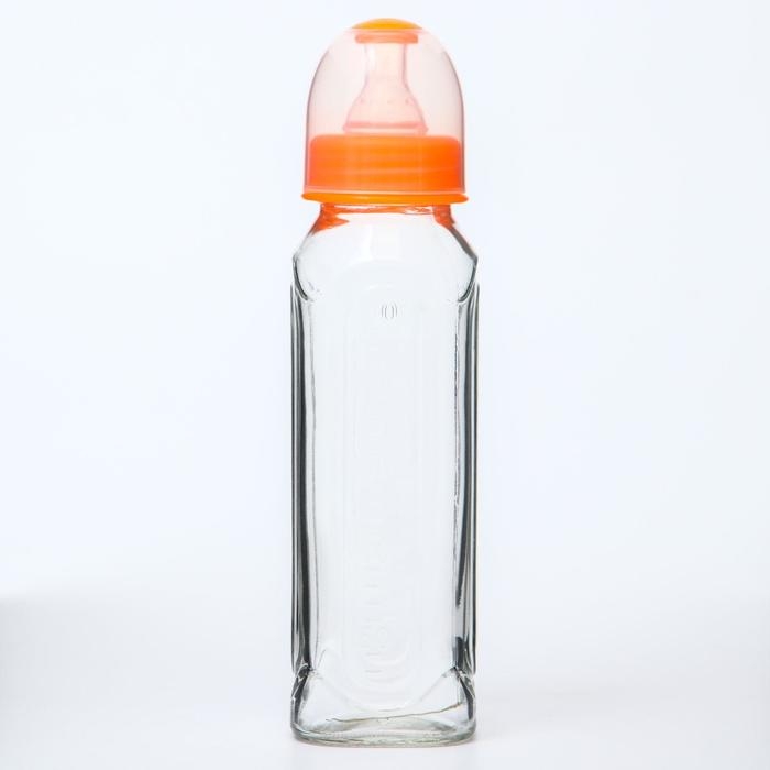 Бутылочка для кормления, классическое горло, стеклянная, средний поток, 240 мл., от 6 мес., цвета МИКС