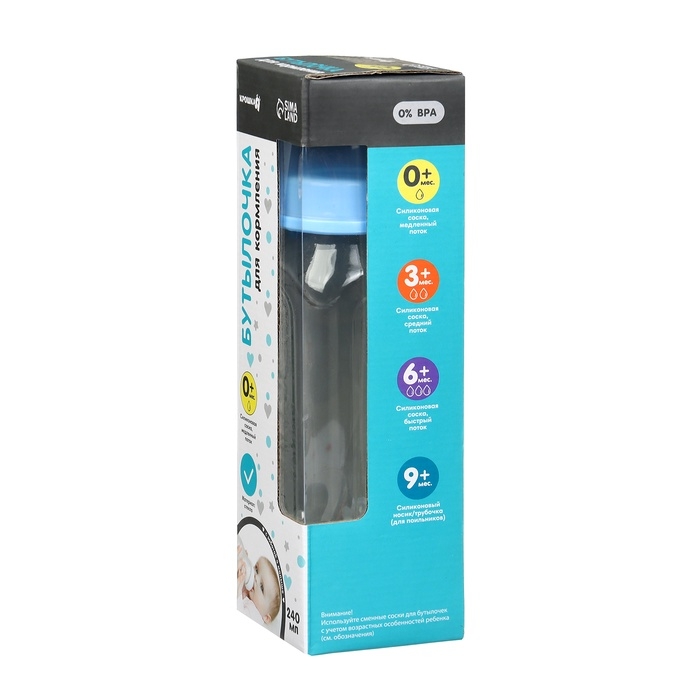 Бутылочка имеет мягкую и гибкую соску, которая не слипнется и будет удобно располагаться у малыша во рту.