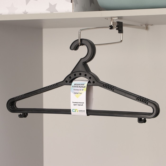 Набор вешалок-плечиков для одежды, 5 шт., размер 46-48, чёрный