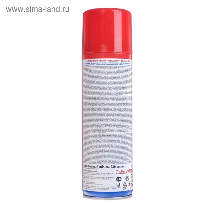 Дихлофос универсальный от летающих и ползающих насекомых 345мл Варан Экстра без запаха дихлофос без запаха от летающих насекомых. Дихлофос средство для уничтожения в помещениях летающих и ползающих насекомых мгновенное действие вызывает нокдаун эффект.Лучшее средство для уничтожения мух комаров москитов бабочек моли , а так же тараканов блох клопов муравьев и кожеедов. Актуален в квартире в доме на даче Эффективно уничтожает летающих насекомых (мух, москитов, комаров) и ползающих насекомых (тараканов, муравьёв, клопов и т.д.), обладает остаточным действием до 45 дней. Дихлофос от мух дихлофос от тараканов дихлофос от комаров дихлофос от клопов дихлофос от муравьев дихлофос от моли дихлофос от ос. Для уничтожения насекомых следует направить струю аэрозоля на поверхности, где они обитают или перемещаются. Норма расхода составляет 7–10 секунд распыления на помещение площадью 15–20 м² и 12–15 секунд распыления — на 25–30 м². Для уничтожения бабочек моли в платяных шкафах, распылять из расчёта 1 с/м³. Одежду не обрабатывать! Через 15 минут после обработки помещение проветрить сквозным потоком воздуха в течение 30 минут.Состав:трансфлутрин 0.04% ,тетраметрин 0.12%, циперметрин 0.2% ,пиперонилбутоксид 0.4%, растворитель 30% , бутан,пропан, изобутан смесь 15-30% , функциональные добавки 5%, отдушка 5%