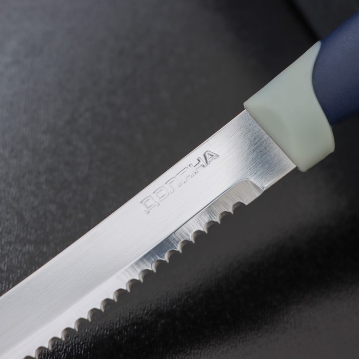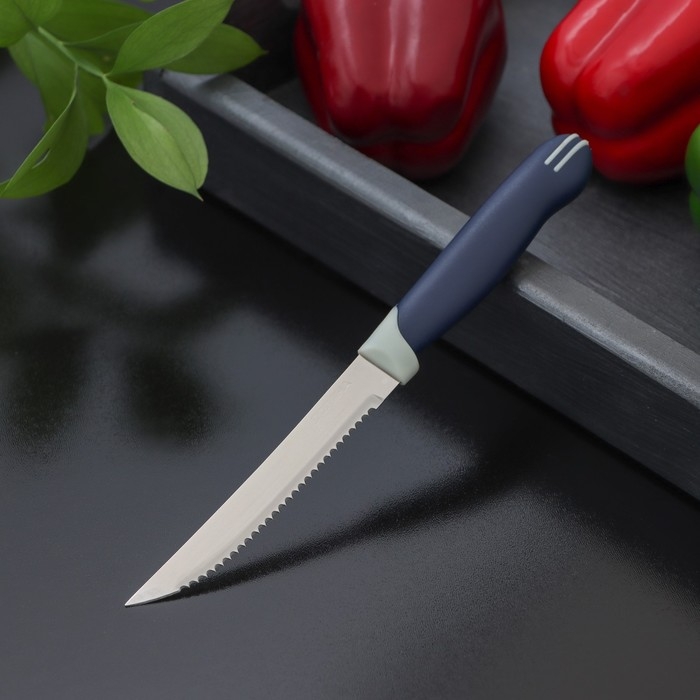 Нож для мяса Доляна «Страйп», зубчатое лезвие 11,5 см, цвет синий