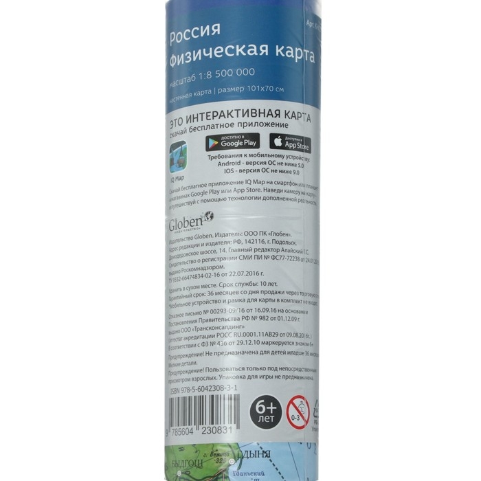 Классическая карта наглядно отражает физико-географическое строение России. А с помощью бесплатного приложения IQ Map строгая карта превращается в интерактивную энциклопедию.