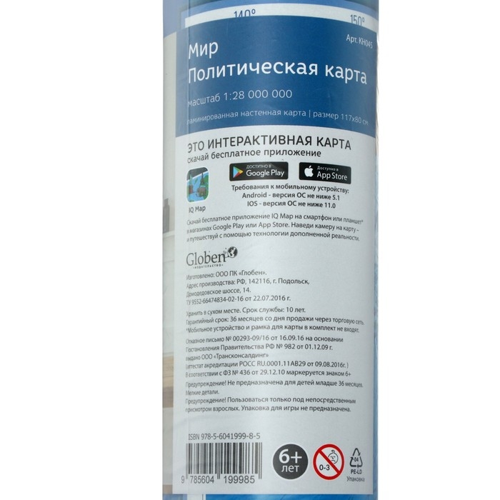 Карта мира политическая, 117 х 80 см, 1:28 млн, ламинированная