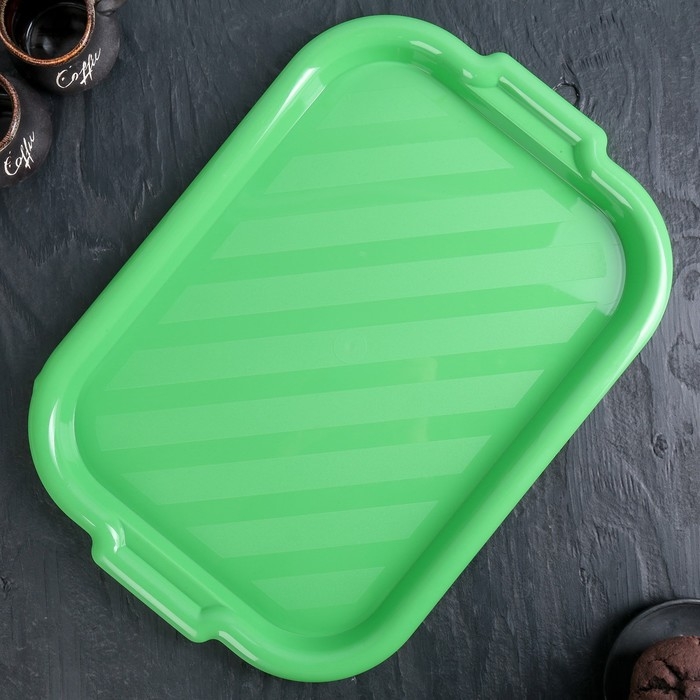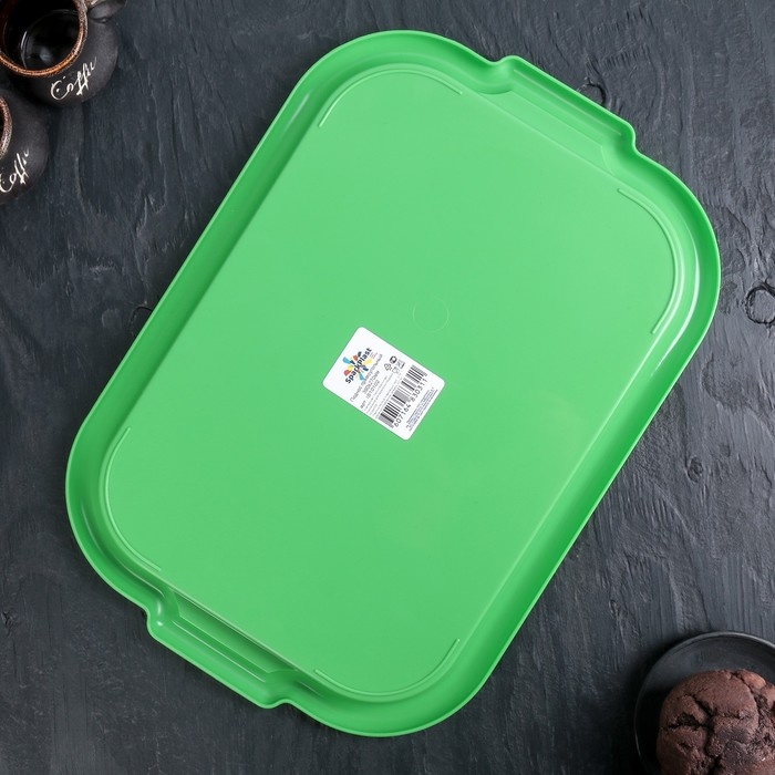 - Высокие бортики не позволяют посуде соскользнуть, а всё случайно пролитое или просыпанное останется на подносе;