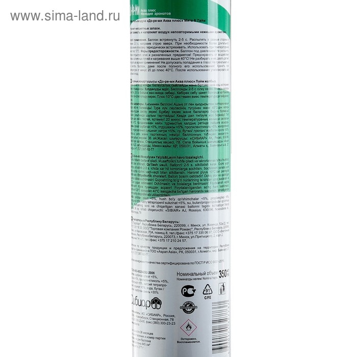 Освежитель воздуха До-Ре-Ми Аква Плюс "Мята и Лайм", 350 мл