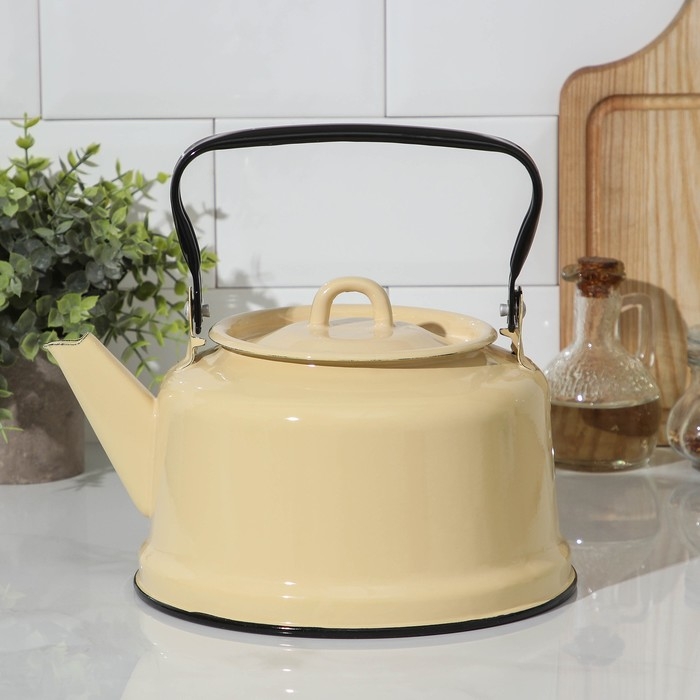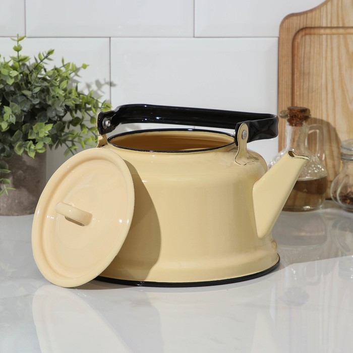 Чайник эмалированный, 3,5 л, цвет бежевый
