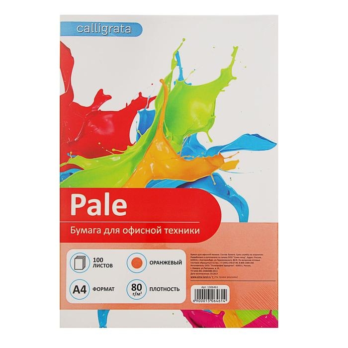 Бумага цветная А4, 100 листов Calligrata Пастель, оранжевая, 80 г/м²