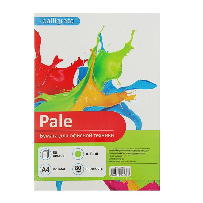 Бумага цветная А4, 50 листов Calligrata Пастель, зелёная, 80 г/м²