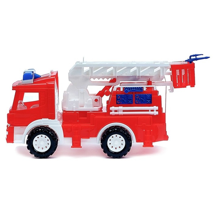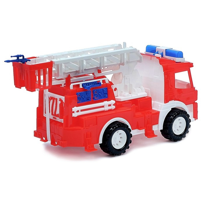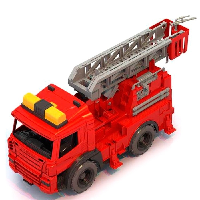 Пожарная машина — мечта каждого юного спасателя. Спецтехника ТМ «Нордпласт» оснащена длинной телескопической лестницей. Стрелу можно легко поднимать и поворачивать в любую сторону. На её конце установлен декоративный брандспойт.