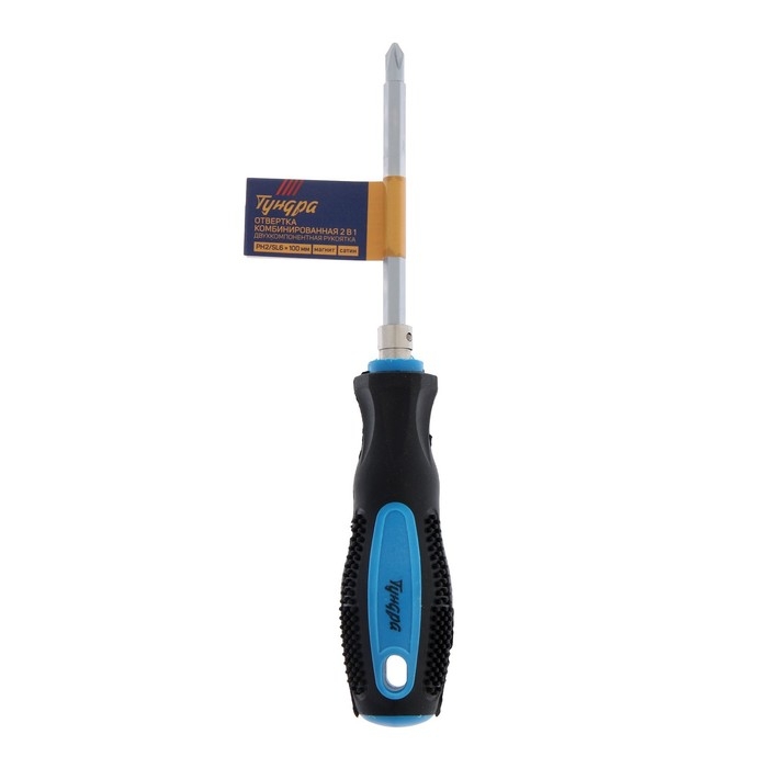 Отвертка комбинированная ТУНДРА, 2 в 1, сатин, 2К рукоятка, магнит, PH2/SL6 х 100 мм
