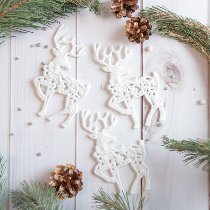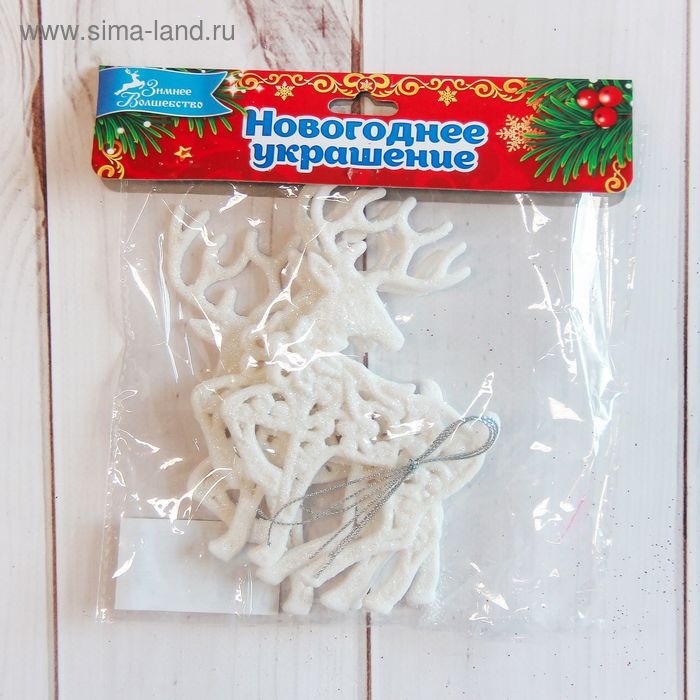 Ёлочные игрушки 3 шт. «Зимнее волшебство. Белый олень резной» пластик, 8х13 см