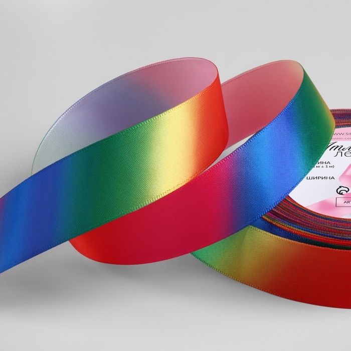 Лента атласная «Радуга», 25 мм × 18 ± 1 м, разноцветная