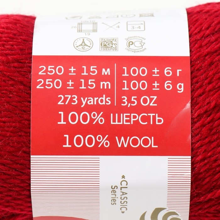 Пряжа "Секрет успеха" 100% шерсть 250м/100гр (363-Св.вишня)