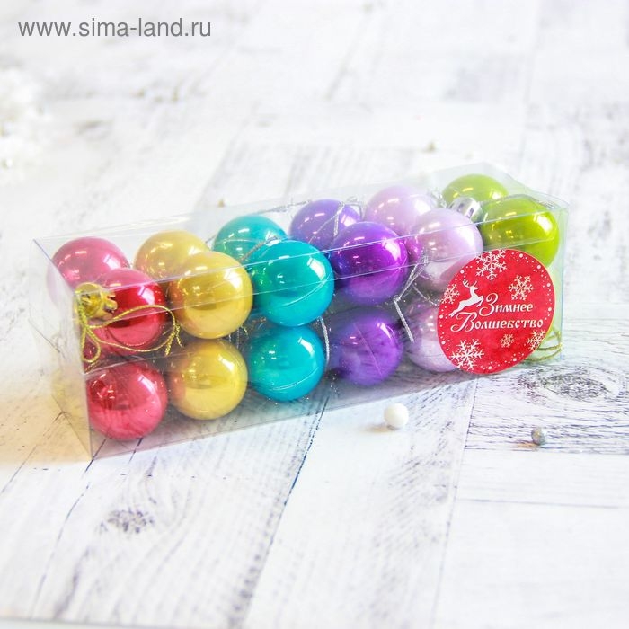 Ёлочные игрушки, шары новогодние , пластик, набор d-3 см, 24 шт "Глянец" радужный МИКС