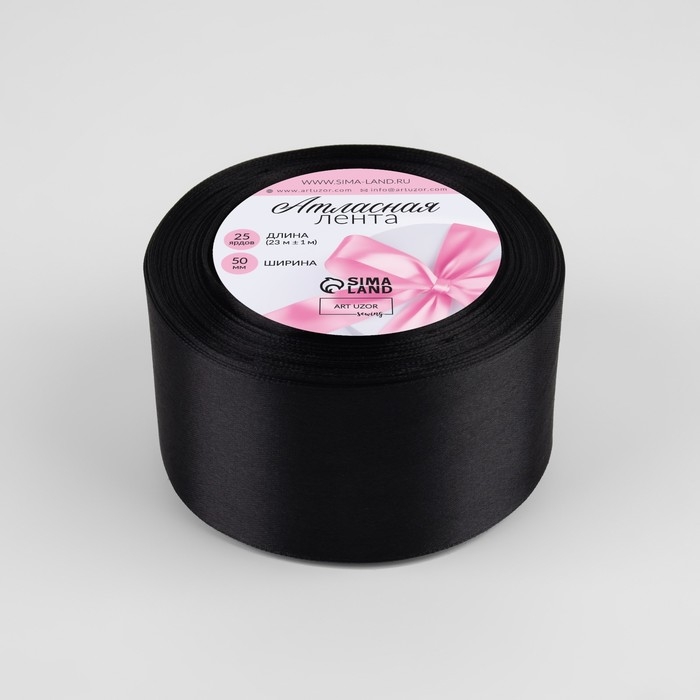 Лента атласная, 50 мм × 23 ± 1 м, цвет чёрный №39