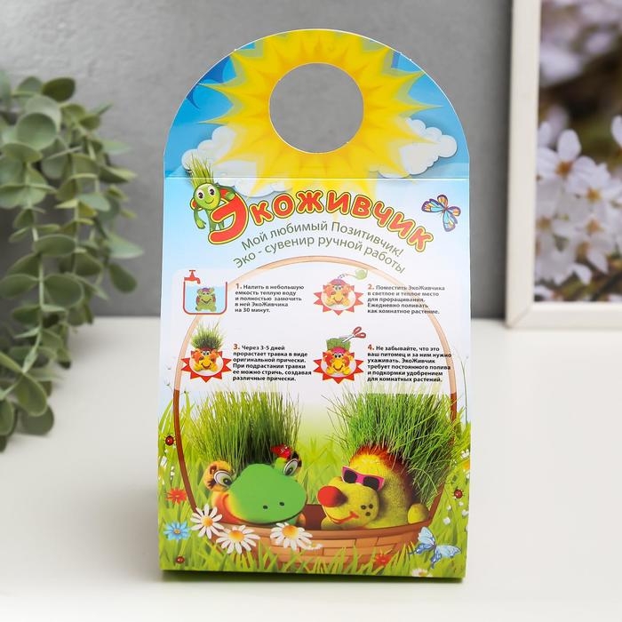 У забавного персонажа на теле или голове вырастает высокая нежная травка, если его регулярно поливать. Эти сувениры производятся только из 100 % экологичных и безопасных для здоровья составляющих.