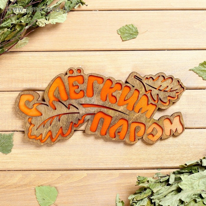 Табличка 2-слойная "С легким паром (листики)", 30х12см МИКС