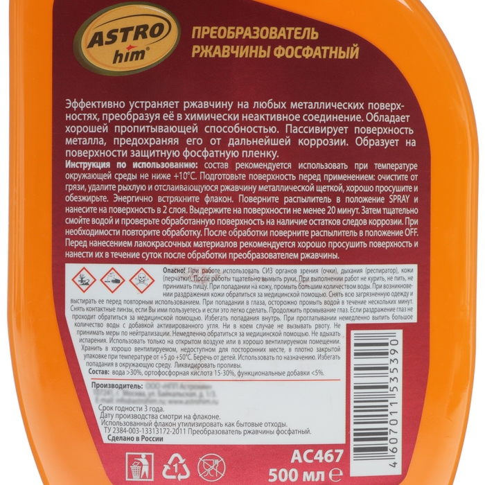 Преобразователь ржавчины Astrohim фосфатный, 500 мл, спрей, АС - 467