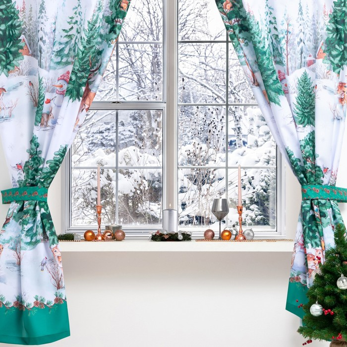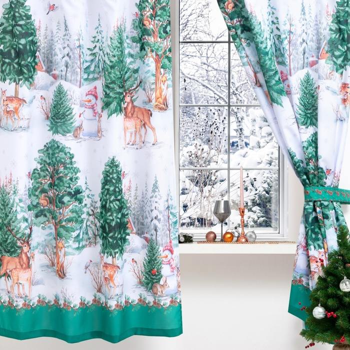 Комплект штор для кухни с подхватами «Новогодний лес» 145х180см-2 шт., габардин