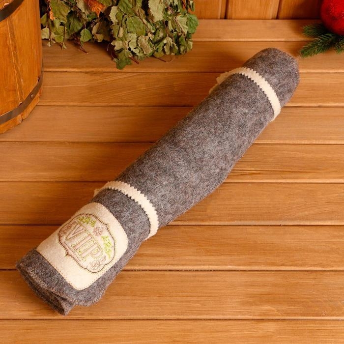 Банный коврик-лежак из войлока с оригинальной вышивкой отлично впитывает влагу и защищает тело от жара полок. Аксессуар выполняет также и гигиеническую функцию, что немаловажно при походах в общественные заведения. Лежак пригодится поклонникам классической русской бани и тем, кто предпочитает сухой жар финской сауны.