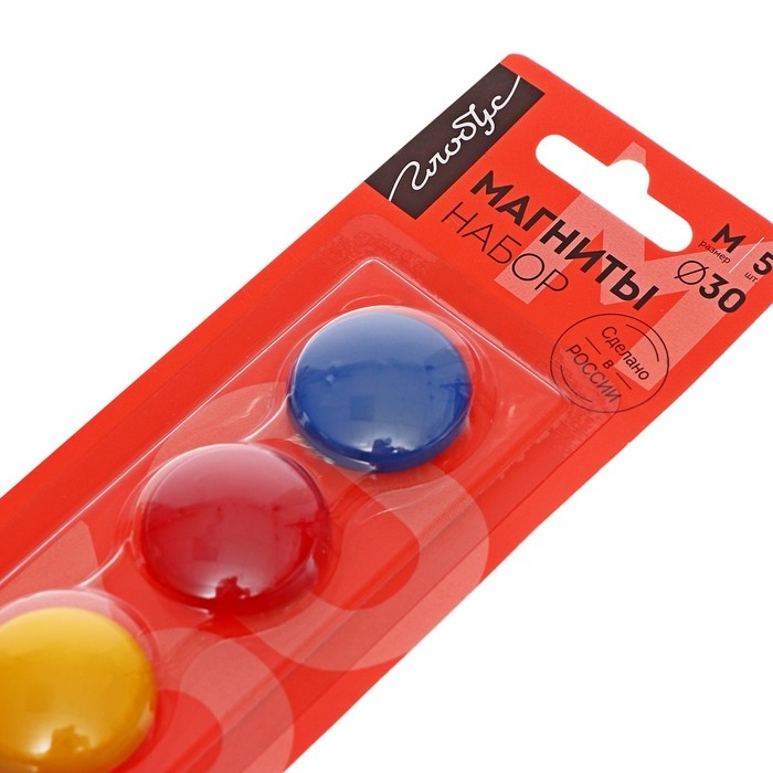 Магниты для досок 30 мм, 5 штук, GLOBUS цветные, в блистере