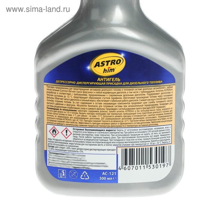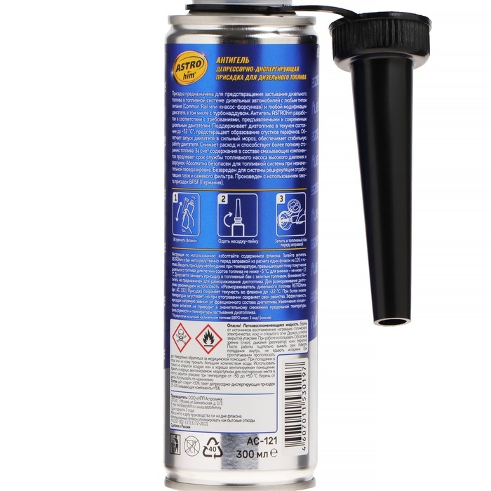 Антигель Astrohim, для дизельного топлива, на 120-140 л, 300 мл, АС - 121