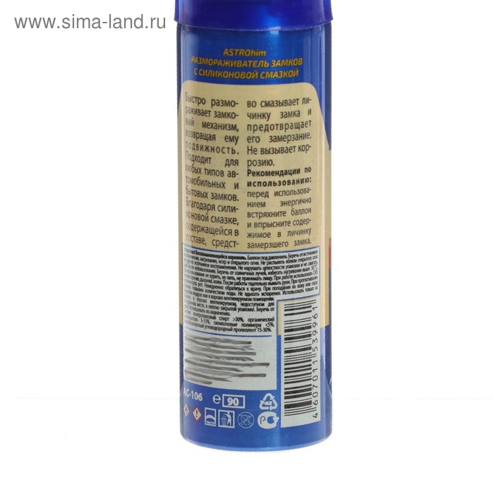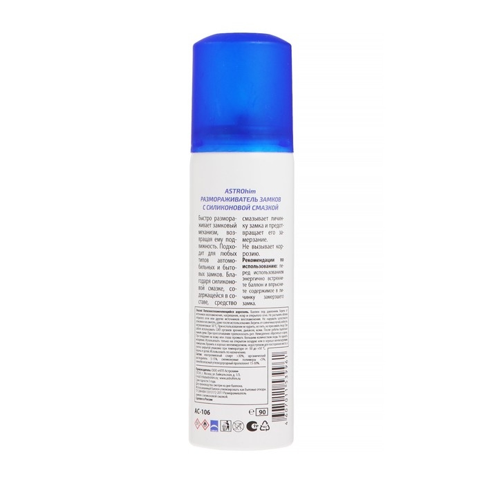 Размораживатель замков Astrohim, с силиконом, арозоль, 90 мл, АС - 106