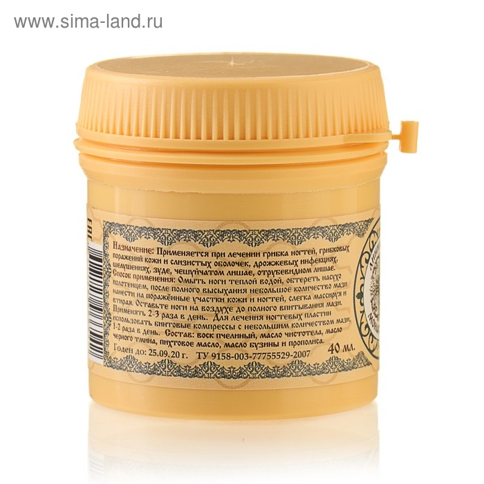 Состав: воск пчелиный, масло чистотела, масло чёрного тмина, пихтовое масло, масло бузины и прополиса.